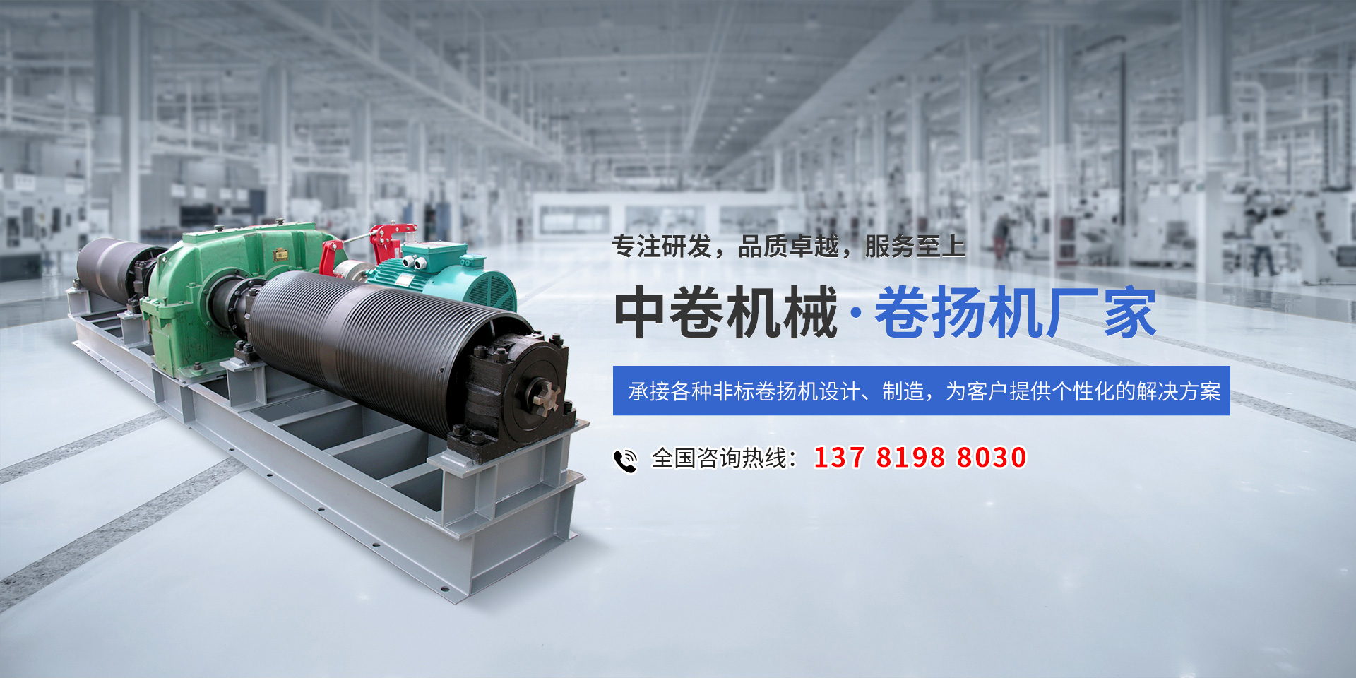 河南中卷機械有限公司是一家集研發、制造、銷售、服務于一體的卷揚機廠家,公司主要產品:JM(慢速)、JK(快速),JMM(摩擦),JWM(蝸輪),JKL(溜放)等系列卷揚機,并承接各種非標卷揚機設計、制造。    公司產品廣泛應用于礦山、冶金、起重、建筑、路橋、水電等行業。其產品遍及全國三十多個省、市、自治區,部分產品出口東南亞、歐美、及非洲等國家和地區。公司生產設備精良、產品質量穩定可靠、供貨及時。    公司遵循自己一慣的質理承諾,服務承諾和信譽承諾,把用戶滿意當做我們的追求。